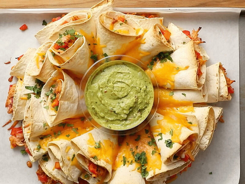 - Create the wreath by placing a small bowl upside down and laying the Good Foods Guacamole around it to form a wreath