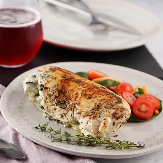 Delicious stuffed chicken with our creamy Spinach Artichoke Parmesan dip!
