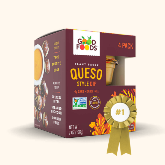Good Foods Single Serve Plant-Based Queso is perfect for lunchboxes, snack time, or picnic
