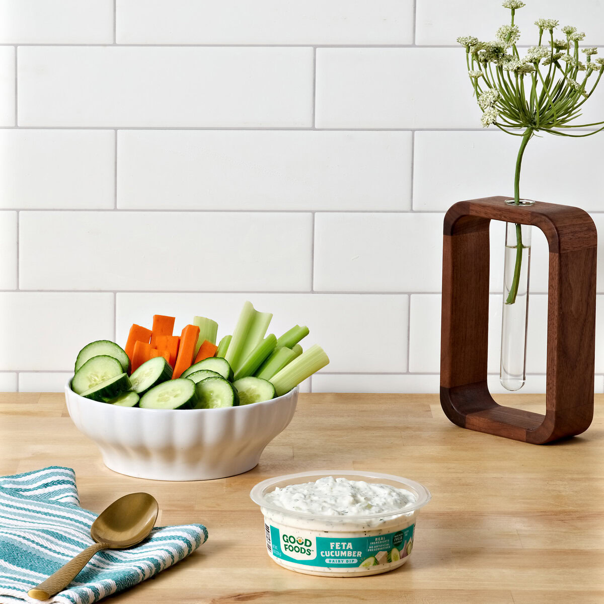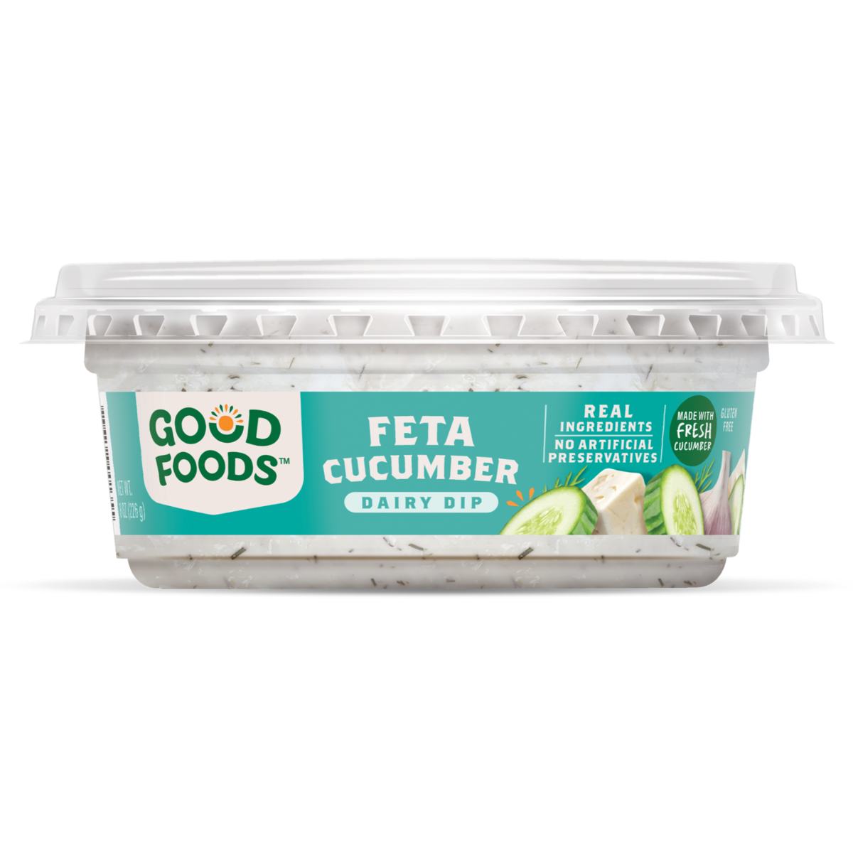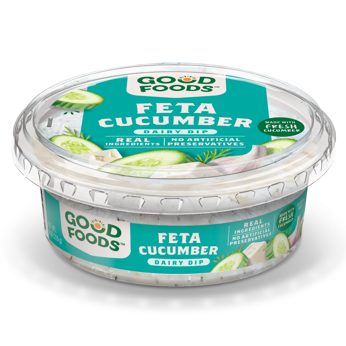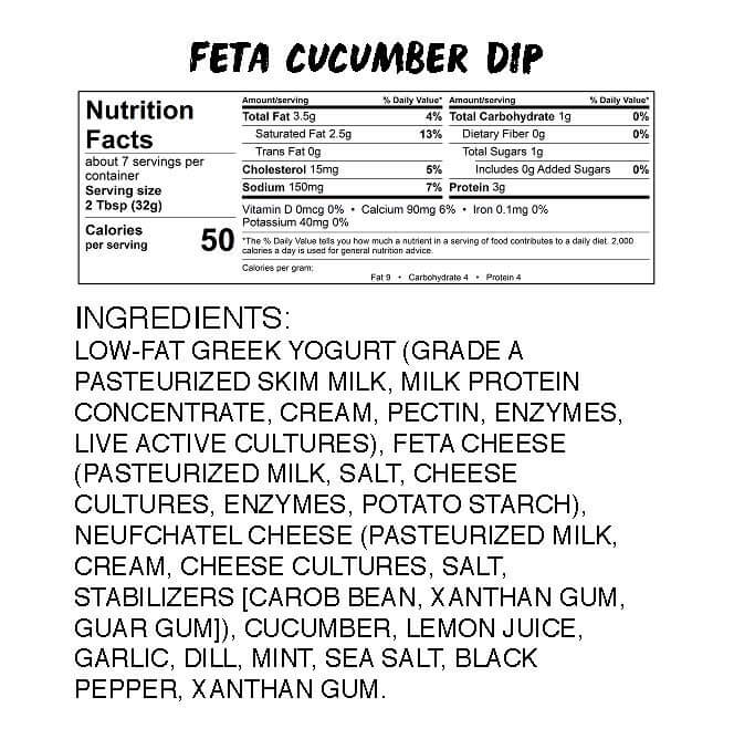 Our delicious blend of cucumber, garlic, dill, and award-winning feta cheese with Greek yogurt creates this refreshing Feta Cucumber dip. Made with real herbs and no artificial ingredients or added sugars. Use it as a dip for veggies, mix it into protein bowls, or use it as a dip for chicken wings.