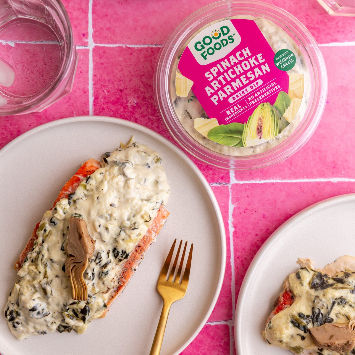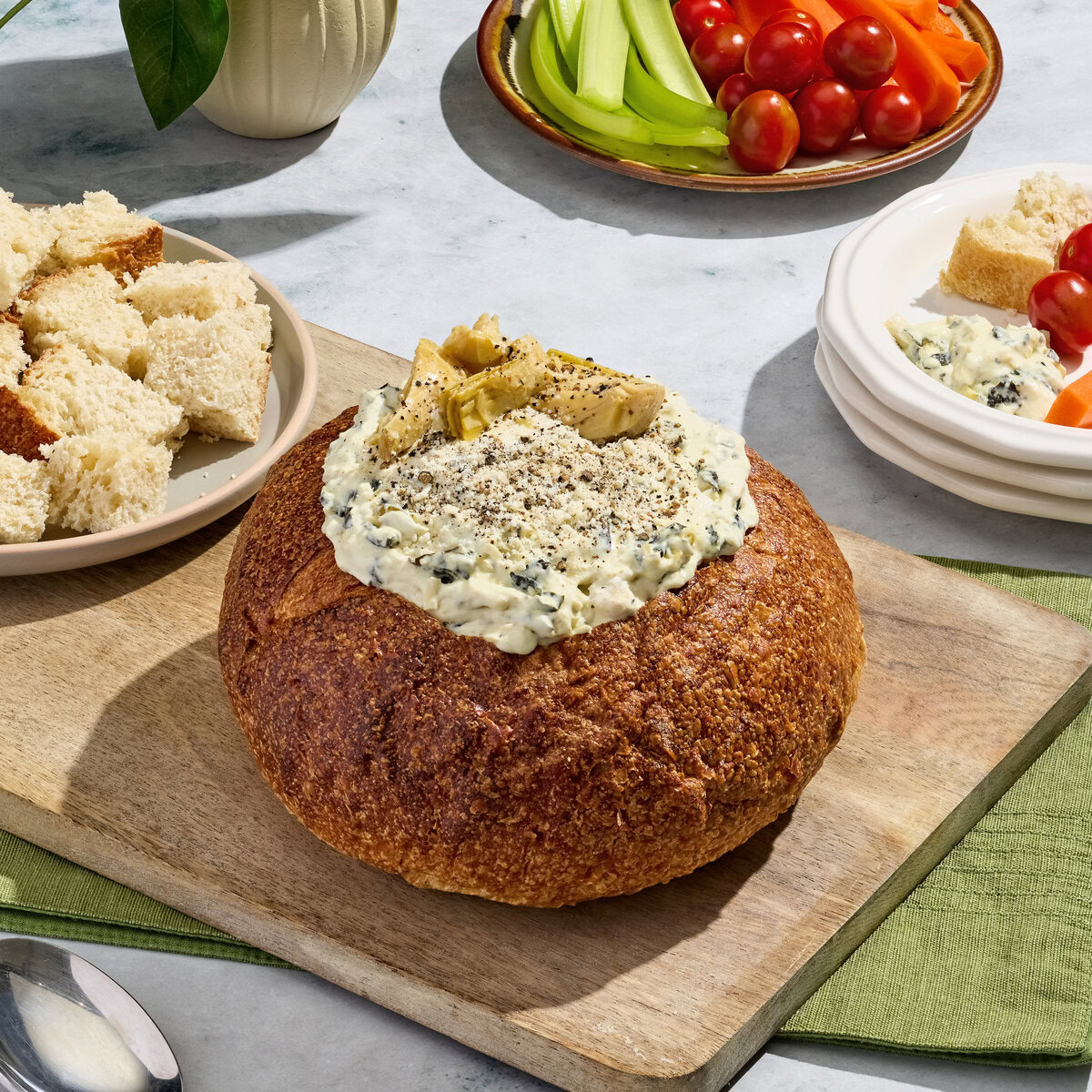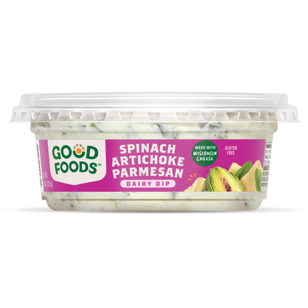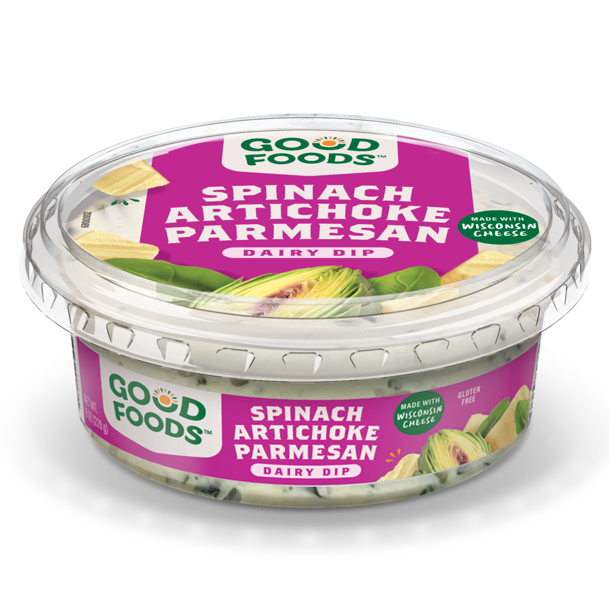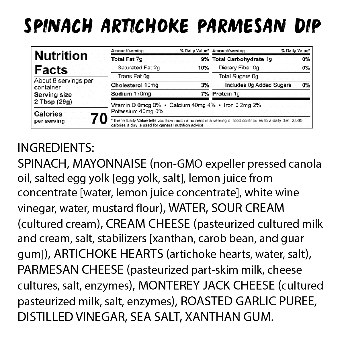 Fresh, flavorful, and full of goodness, it’s fair to say that our Spinach Artichoke Parmesan Dip is why crackers, tortilla chips, bread bowls and veggies were put on this earth. When crafting this delicious dip, we said yes to fresh spinach, artichoke hearts and Parmesan Cheese then backed it up with a big no to artificial ingredients, preservatives and sugars.