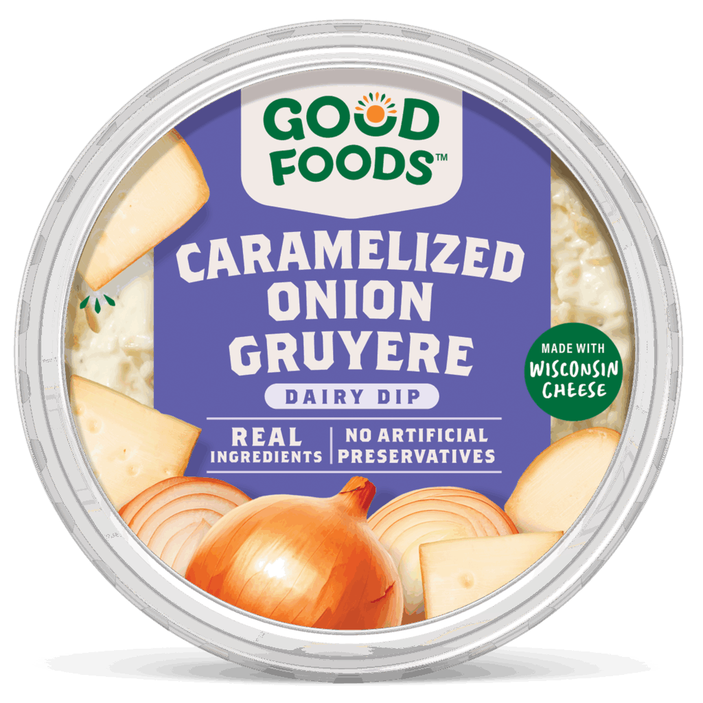 Made with sweet caramelized onions, low fat Greek Yogurt, and creamy gruyere and swiss cheeses, this dip is rich and yummy.