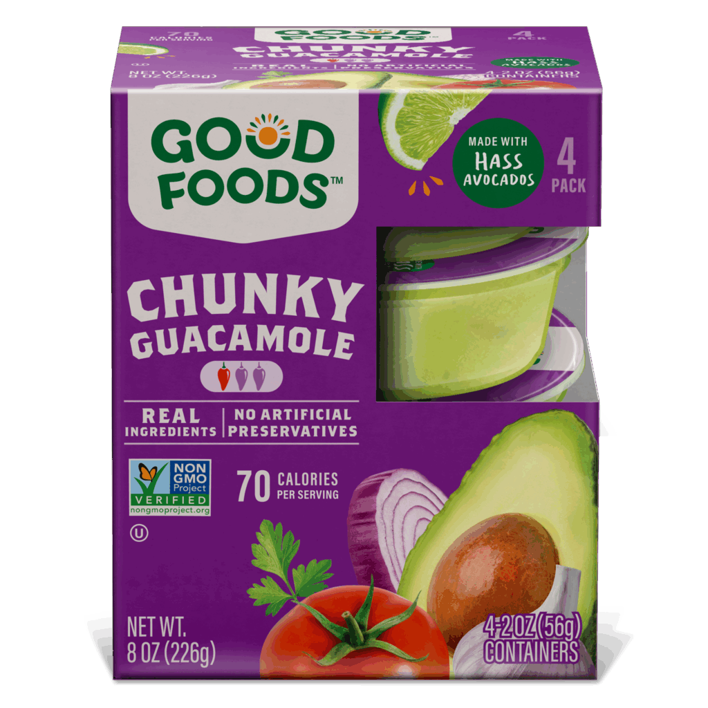 Chunky goodness and full of flavor. This simple blend of Hass avocados, tomatoes, onions, garlic, and fresh lime juice is guacamole at its purest.
