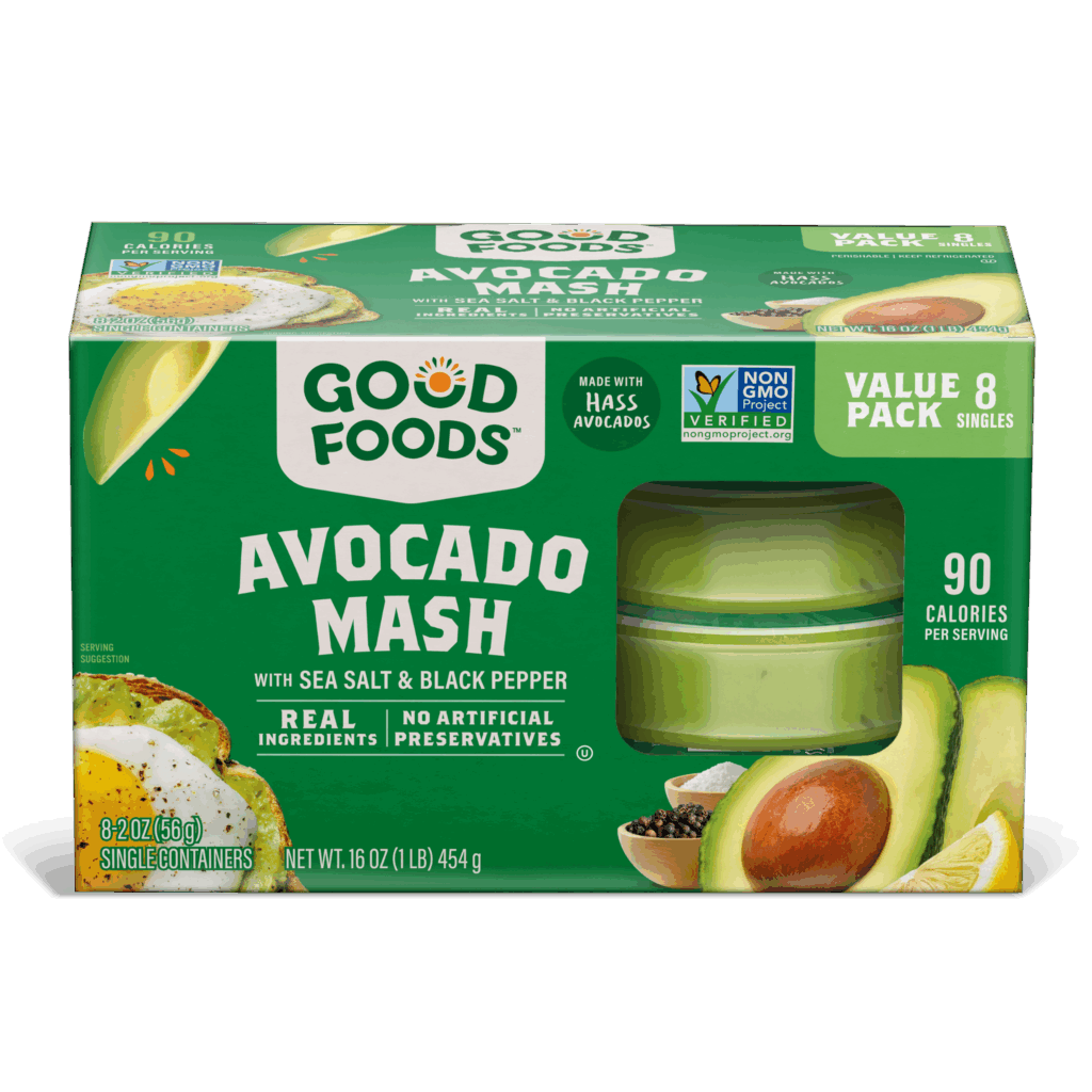 Made with only four wholesome ingredients—Hass avocados, cracked black pepper, sea salt, and lemon juice—our avocado mash is a simple yet delicious spread. Packaged in single servings, it’s yours to enjoy without compromise.