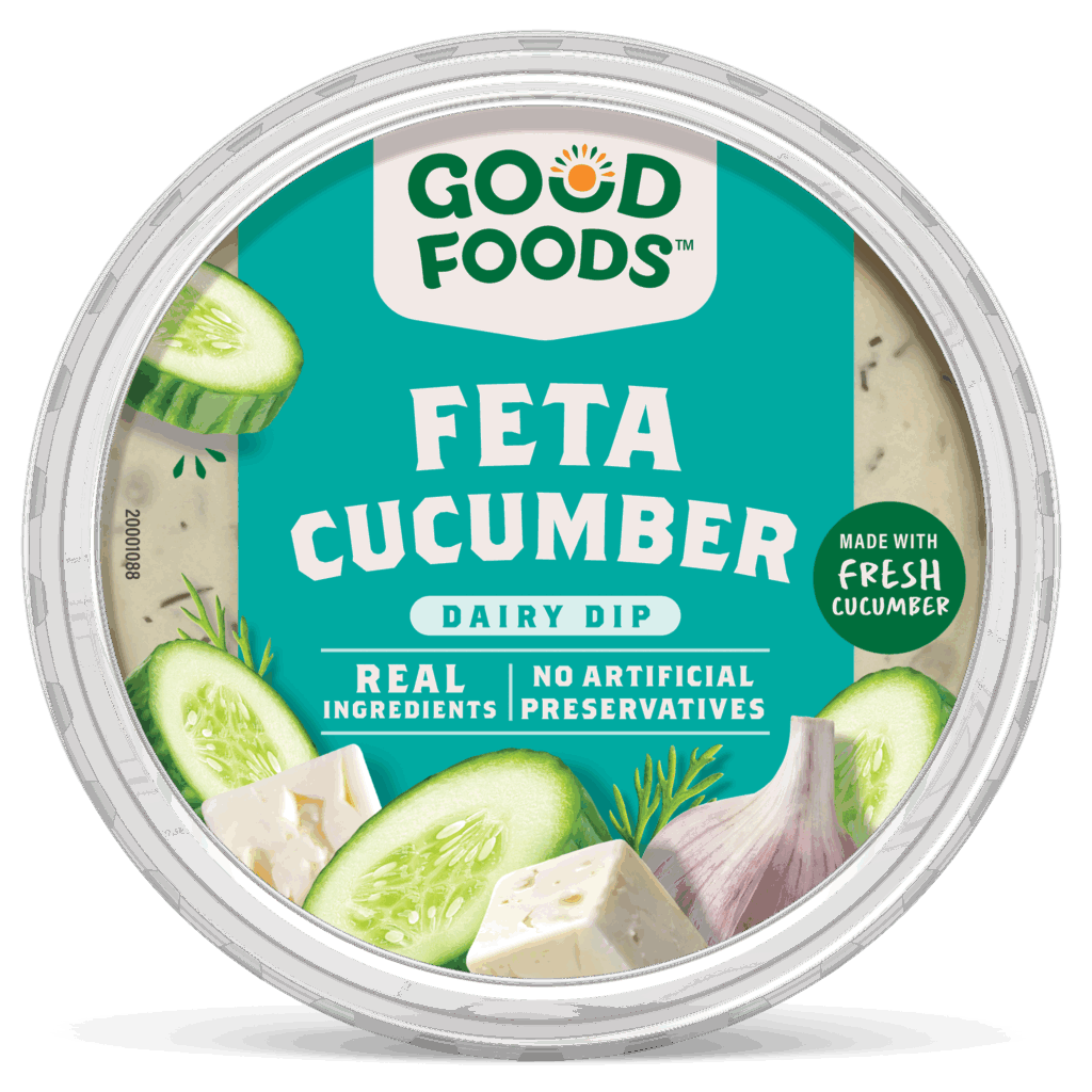 Our refreshing Feta Cucumber dip is made with real herbs in a high-quality blend of cucumber, garlic, dill, feta, and Greek yogurt. We like to think it's the perfect palate opener for spring/summer.